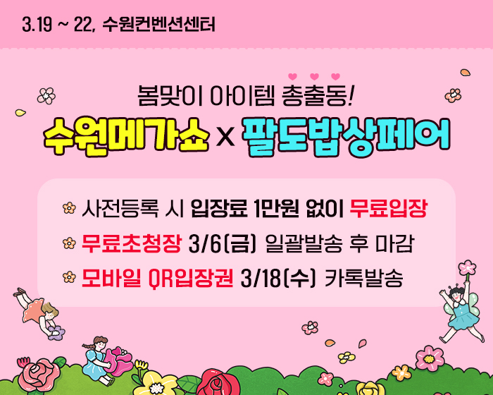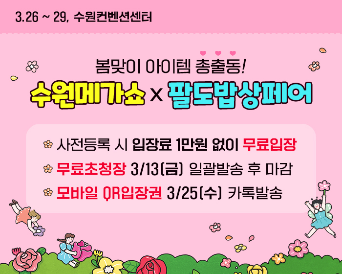 수원메가쇼 및 메가쇼가 주최하는 행사 관련 안내 및 고지 용도(이메일, 휴대폰번호, 우편발송) 의 사용과 개인정보 취급방침에 동의합니다.